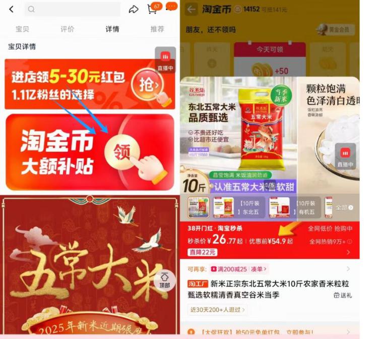 谷米集五常大米10斤💰26.7 - ①复制到淘宝打开拿礼金 ②下拉详情进淘金币页拍下 (ZRqLUsBQ9Vy)/ AC66/