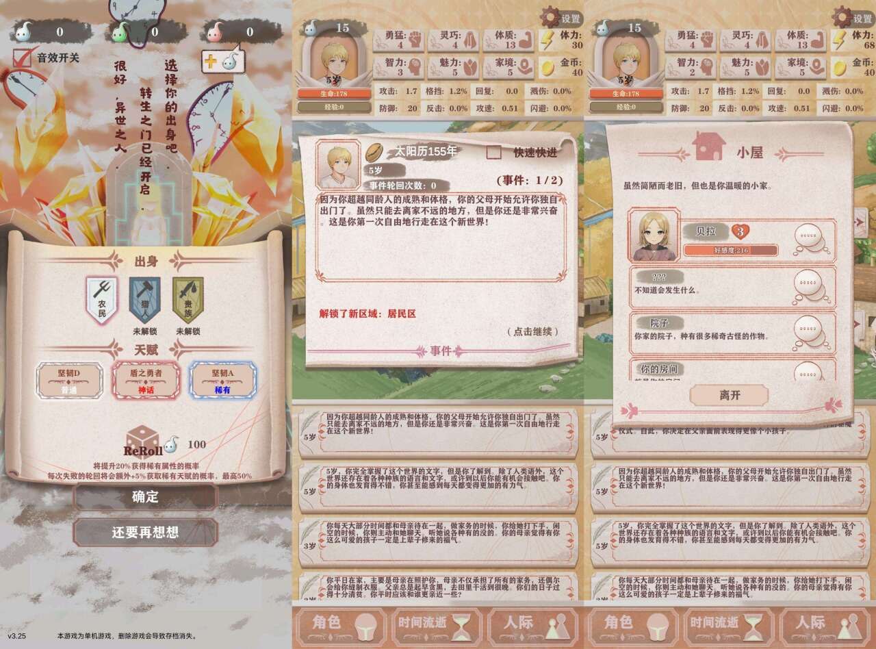 已更新!是一款超上头的异世界轮回人生模拟+肉鸽RPG手游。你被女神召唤,转生到剑与魔法世界,自由选出身、练属性、闯冒险、打BOSS,每局随机事件与剧情分支不同,搭配装备词条、技能、遗物打造专属流派。多周目轮回继承灵魂成长,NPC有专属剧情与好感互动,玩法丰富耐玩,文字叙事沉浸,休闲与策略兼顾,喜欢人生重开与异世界冒险的朋友别错过!解锁免广告获得奖励,体力越用越多。(如果在登录时无法进入游戏,则需要卸载登录跳转的软件,然后进行注册登录方可游玩。如果无法安装就断网后安装。)