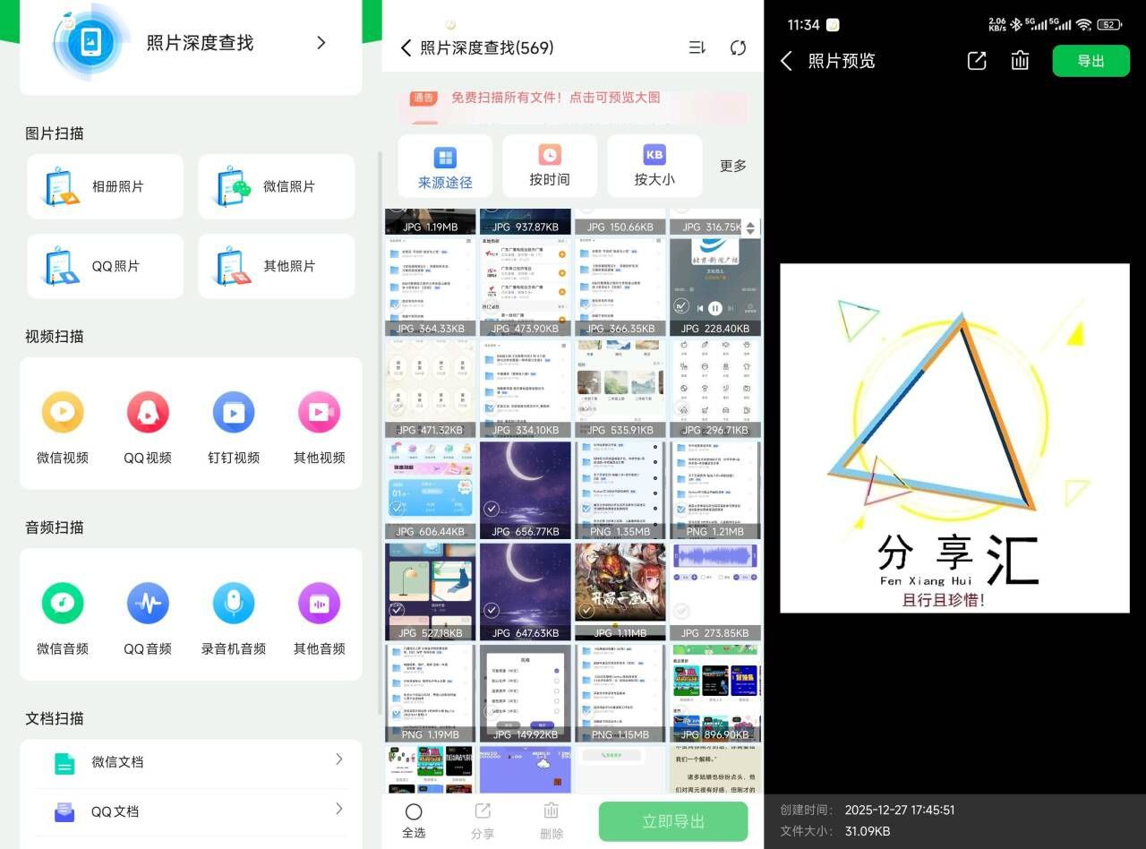 是安卓端专业安全的数据恢复与深度扫描工具,无需ROOT,本地处理保护隐私。可一键找回误删照片、视频、录音、微信/QQ文件,支持Word、PDF、压缩包等文档扫描恢复,支持预览与批量导出。操作简单、扫描快速、兼容性强,帮你轻松挽救重要数据,日常必备数据救援神器。解锁会员功能。(如果无法安装就断网后安装!)