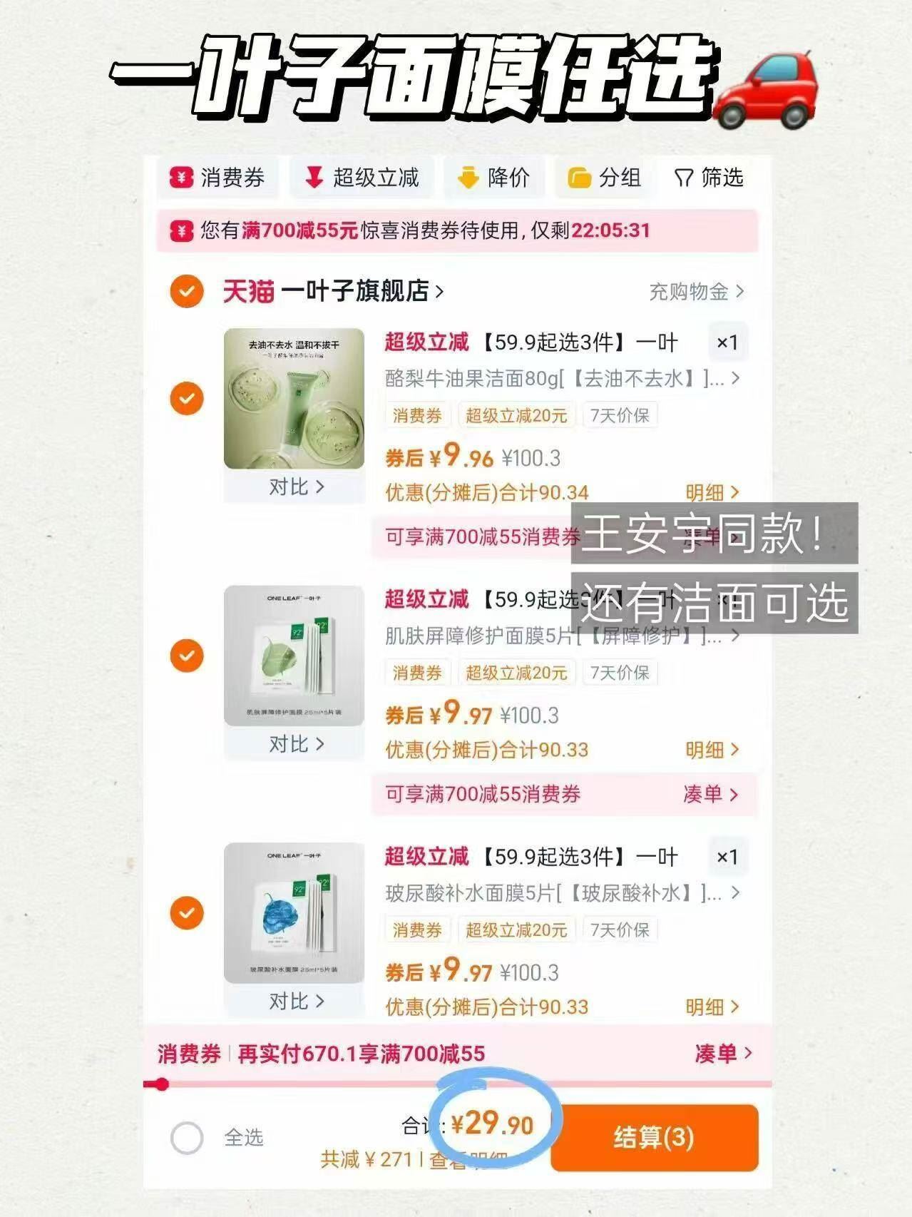 还有水/乳/去角质素 随心搭