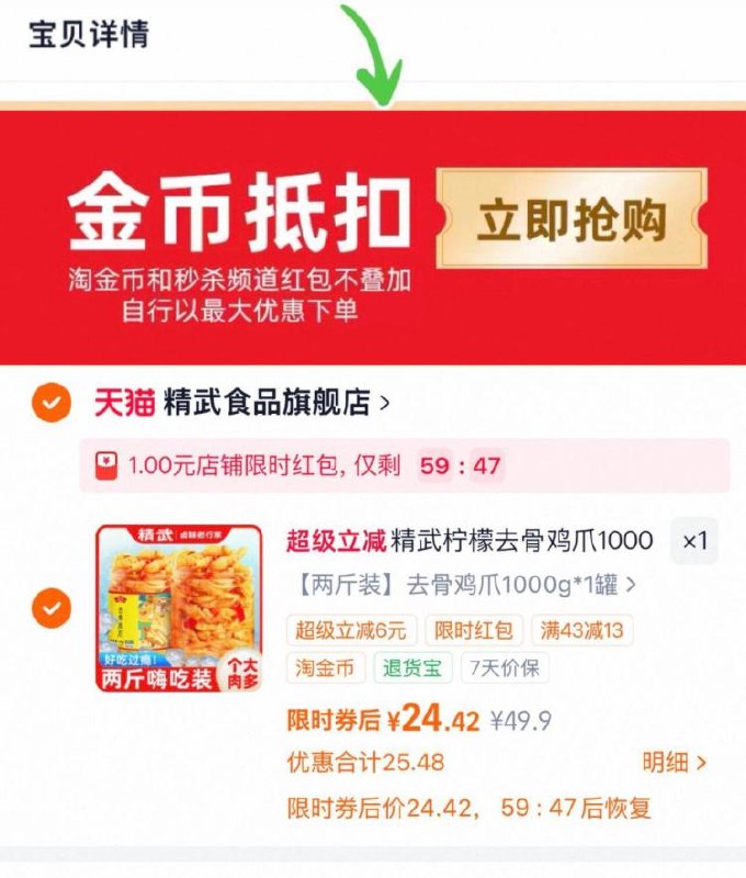 精武 柠檬酸辣无骨凤爪1kg 下拉详情页叠金币拍下💰24 (MeuS5V32Ut3)/ AC66/