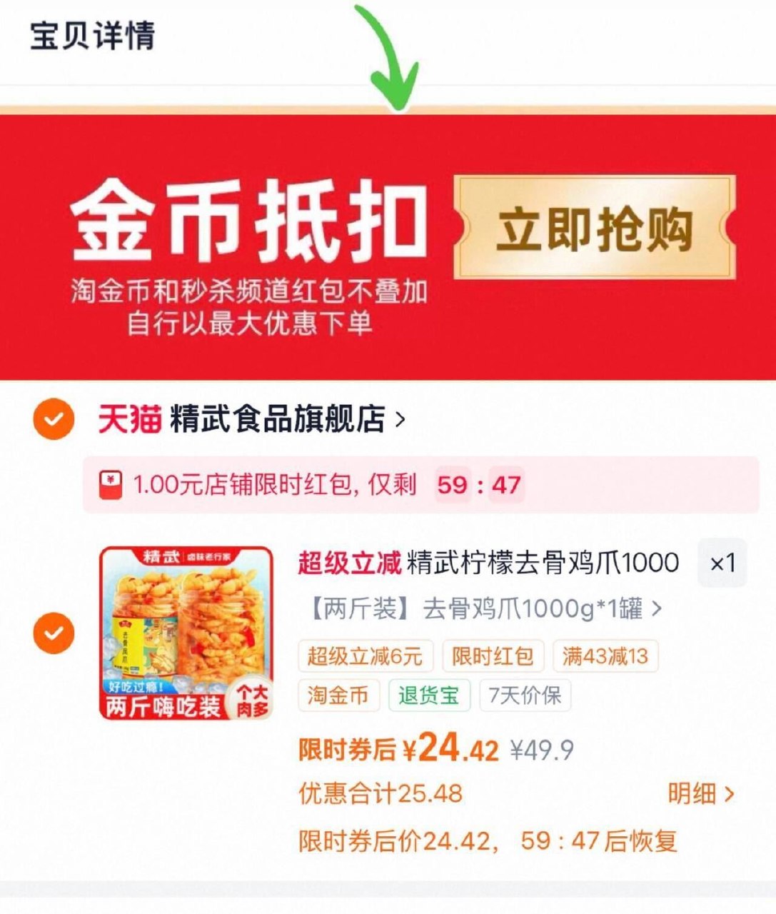 精武 柠檬酸辣无骨凤爪1kg