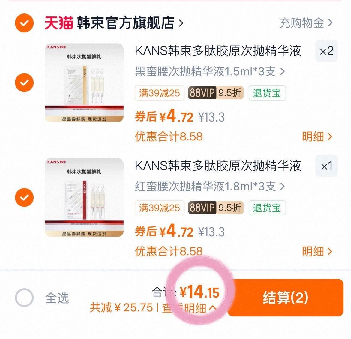 韩束多肽胶原次抛精华液9支