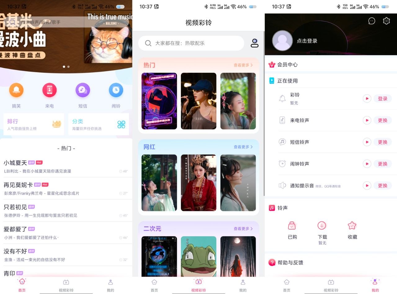 ♻️通过酷音铃声,你能及时获取最新潮的手机铃声,分类极为丰富,不管你想要高端大气的还是趣味搞怪的,这里都能满足你。酷音铃声是一款集成了铃声设置、彩铃设置与铃声创作功能的安卓铃声应用,来电时手机会显示专属视频,操作简单便捷,让你的铃声不仅能听还能看。
