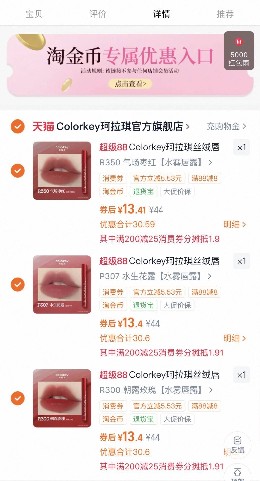 1,下拉详情拍3赠1件 Colorkey珂拉琪空气唇釉 -(XqRa56IRQxw)/ Cb79 — 2、凑1件,可退了 -(SxxW56Iie46)/ Cb79