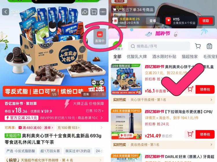 - 在猫超搜索“零食”,找到参与活动的3个指定品牌。