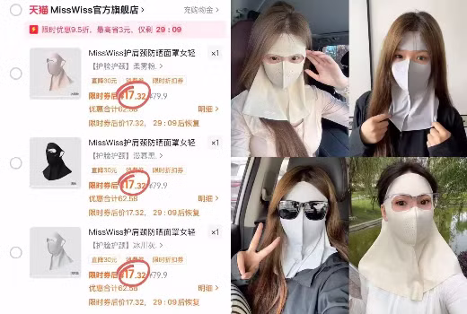 17.5元护肩颈防晒面罩某音2件99元限时速抢