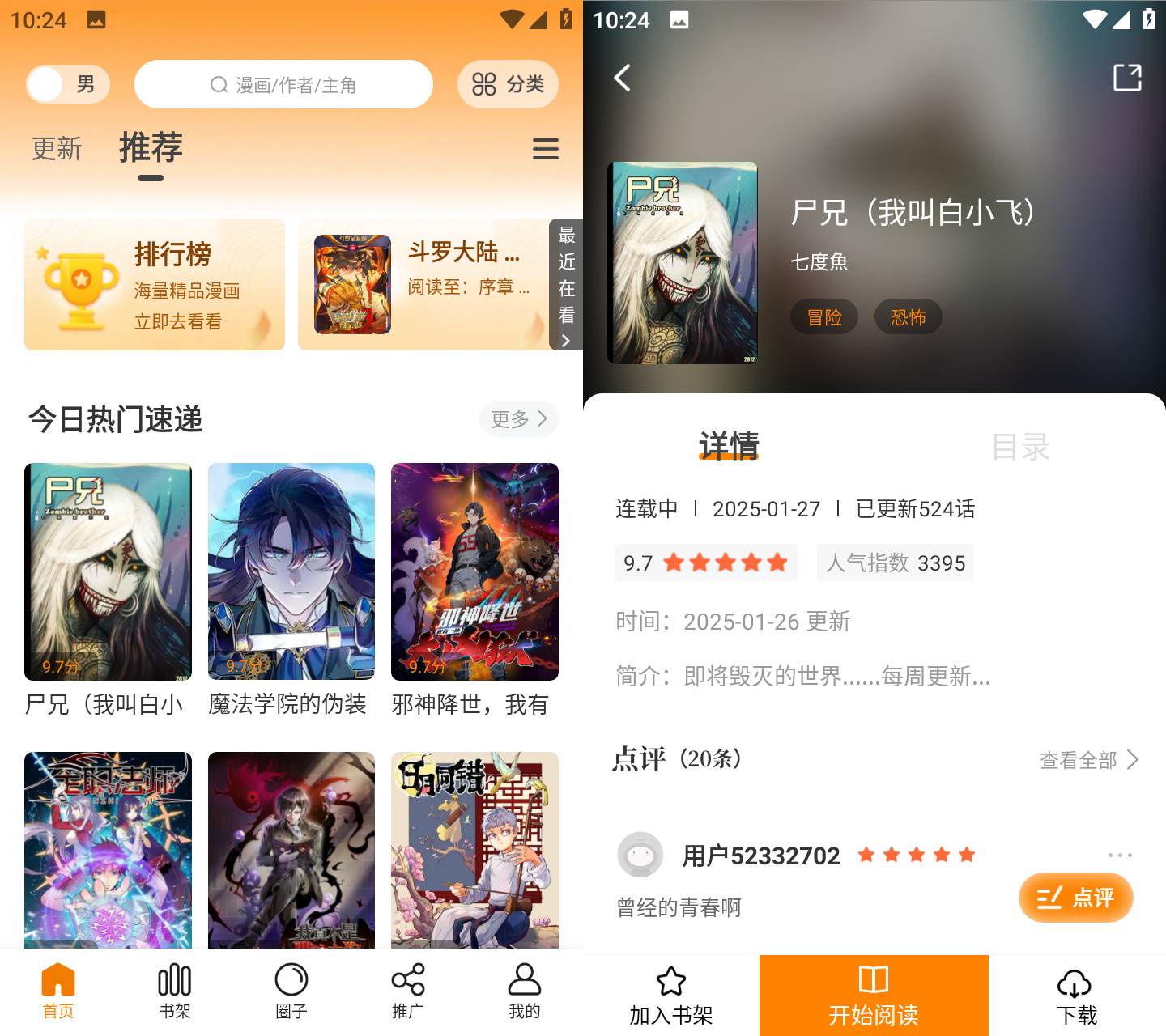 Android 漫天星漫画 v3.2.5 去广告清爽版 2026年1月29日 30 次浏览 手机软件 软件介绍漫天星漫画app是一款免费观看各种漫画的阅读平台,应用已经破解了免广告,用户在看漫画的时候不会出现广告的打扰,在应用中收录了各种不同类型的热门漫画和经典漫画,软件中的漫画都已经按照标签分好类了,用户可以快速的查看,各种不同的漫画会以最快的速度更新。软件截图 下载地址 立即下载 付费下载 ¥191 ¥0.66 此资源需要付费下载