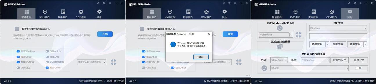 【软件介绍】:HEU_KMS_Activator 是一款能够智能识别并激活 Windows 和 Office 的工具。它会优先尝试数字许可证、KMS38/OEM/KMS 激活方式,并自动跳过已经永久激活的 Windows 或 Office。支持最新的 Windows 和 Office 版本,提供更稳定可靠的激活服务。