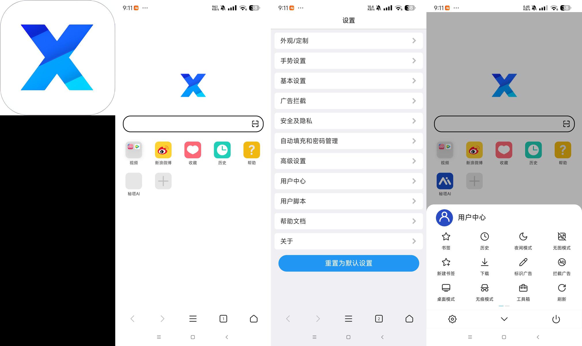 分享_X浏览器谷歌版5.0_嗅探功能强 内置油猴脚本_