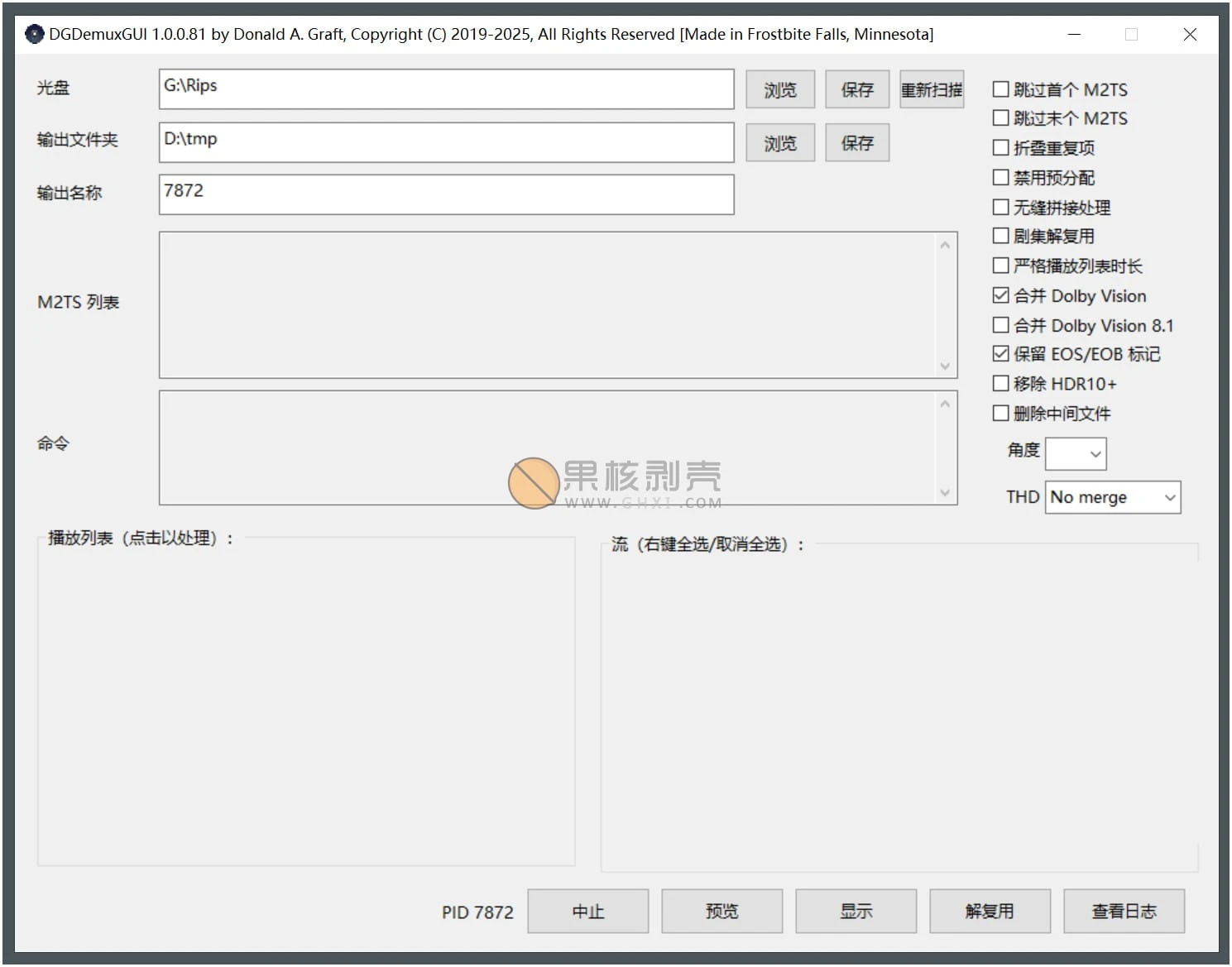 DGDemuxGUI 本身不包含解码器核心,需配合 DG 系列工具(如 DGIndexNV)使用。