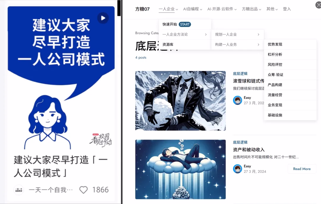 对于个人,这些一人公司的概念简单来说,就是用自己的想法搭配AI员工来创造作品,从制作推广宣发到盈利的正向循环,也就是此前也经常提到的超级个体。有很多人可能刷到了类似概念,但就是不知道怎么动手去做。